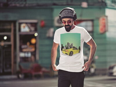 tシャツ メンズ 半袖 ホワイト グレー デザイン XS S M L XL 2XL Tシャツ ティーシャツ T shirt 011449 車 乗り物 街並み